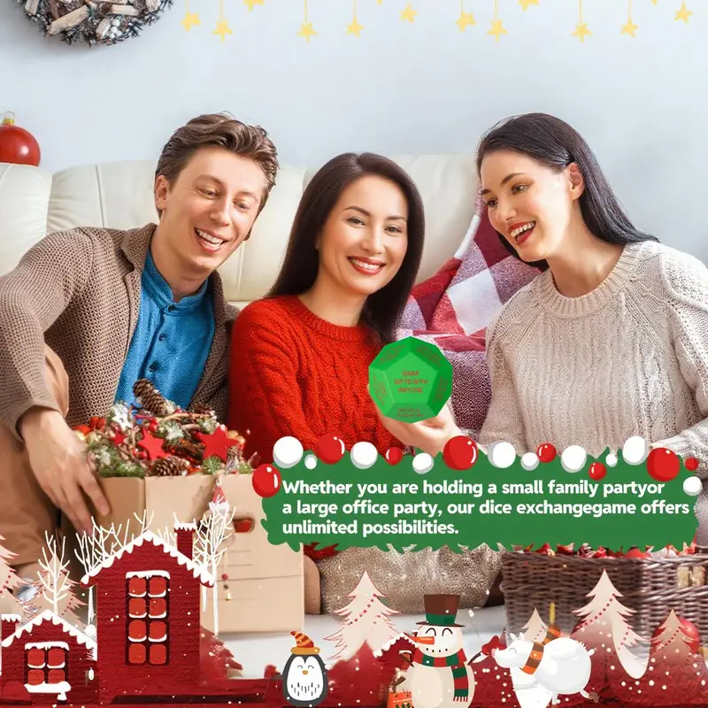 - ćInnovative Gift Exchange Dice OversizedćOur gift exchange dice features 12 unique sides with clear play instructions, ensuring a fun and Every Santa Gift Exchange Dice Rolled Brings New Surprises