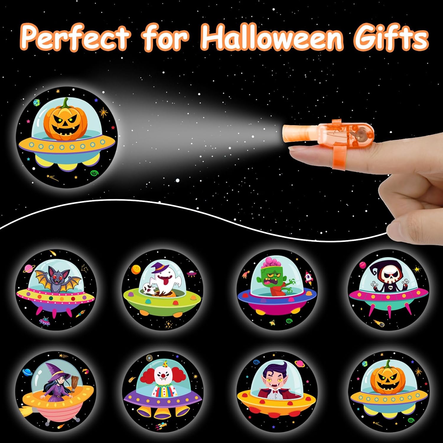 - 🎃【40 Pack Super Value Pack】These Space-themed Halloween LED Light Finger Lights Toys boast a 40-piece set with 8 one-of-a-kind designs. Every design is available in 5 pieces, serving as fantastic non-candy Halloween party favors that’ll brighten up the night and bring joy to kids.